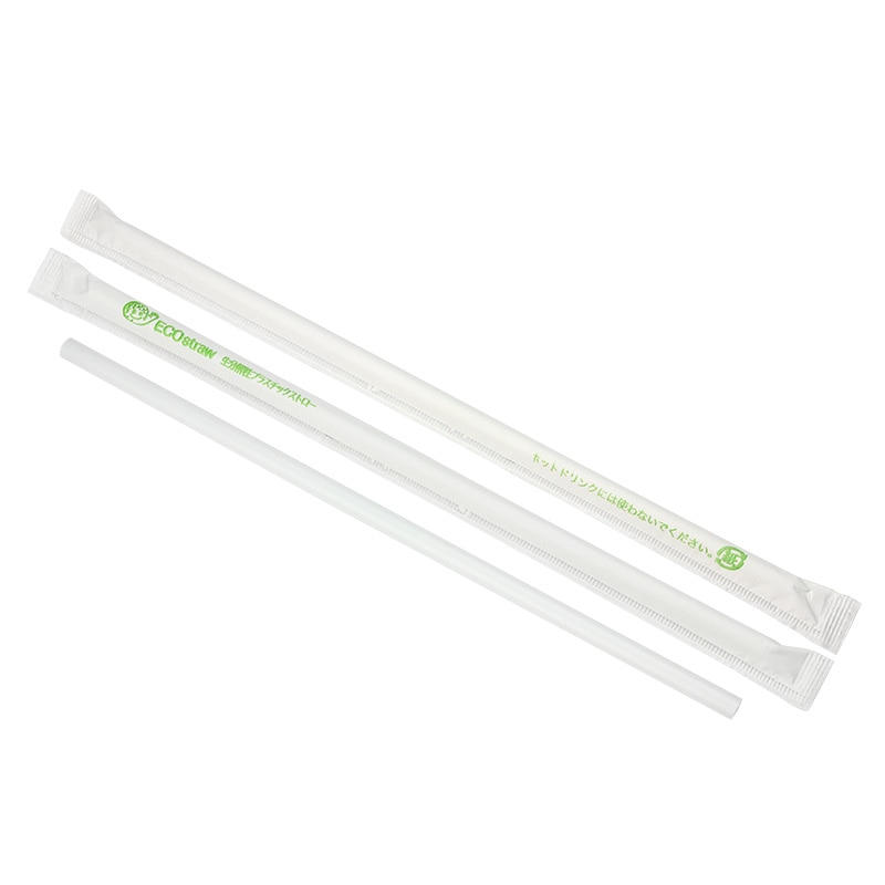 生分解性ストロー cafeECOストロー ストレート 6x180mm 白(ナチュラル) 袋入り 500本