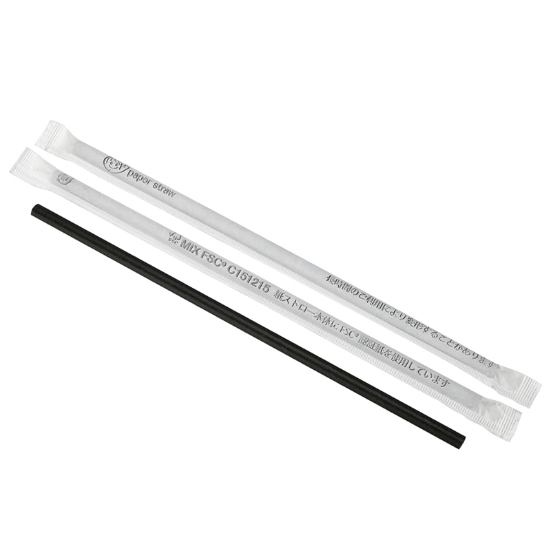 紙ストロー Cafeペーパーストロー ストレート 口径6x210mm 黒 紙包装 500本