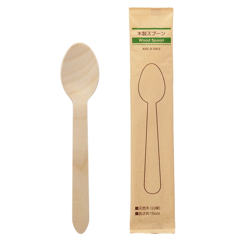 【販売終了】木製スプーン 未晒紙完封ウッドスプーン 155mm 100本