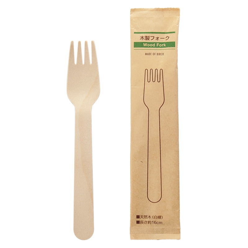 木製スポークBF 紙袋入り フォークスプーン 162mm 100本