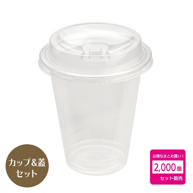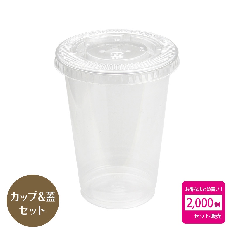 【納期3日~5日/代引不可】クリアカップ蓋付 12オンス プラスチックカップ 92-370L ストローリッド 2,000個セット