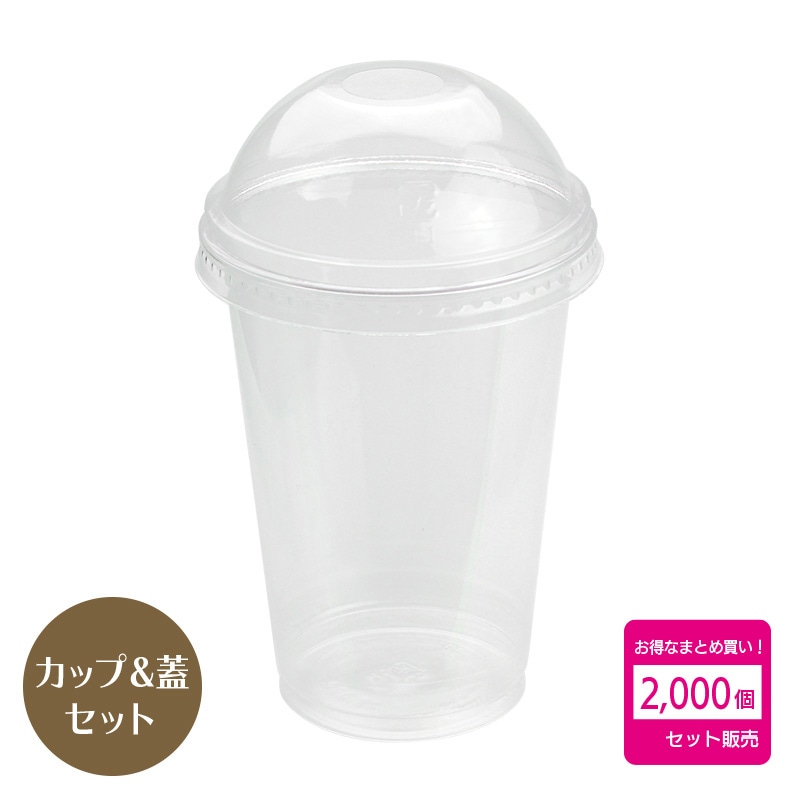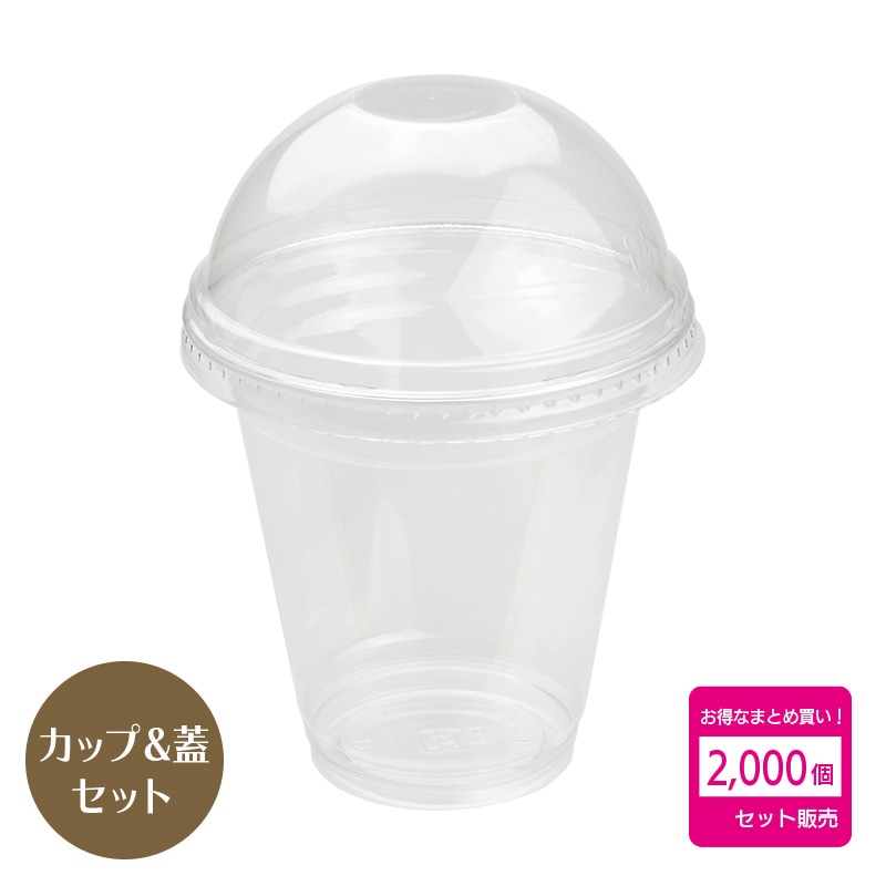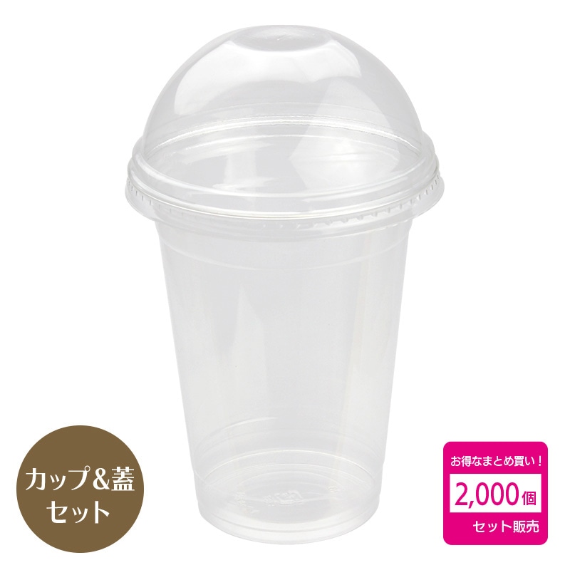 【納期3日~5日/代引不可】クリアカップ蓋付 12オンス プラスチックカップ 92-370L ドームリッド(穴無) 2,000個セット