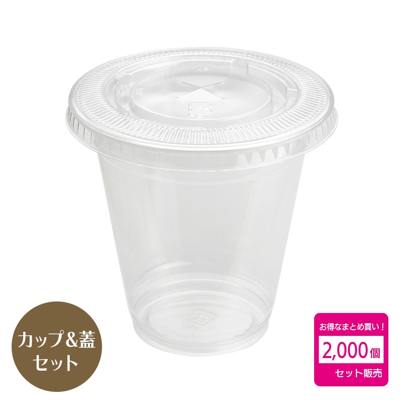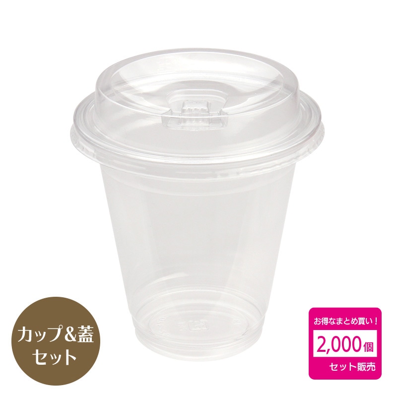【納期3日~5日/代引不可】クリアカップ蓋付 10オンス プラスチックカップ 78-300L ストローリッド 2,000個セット