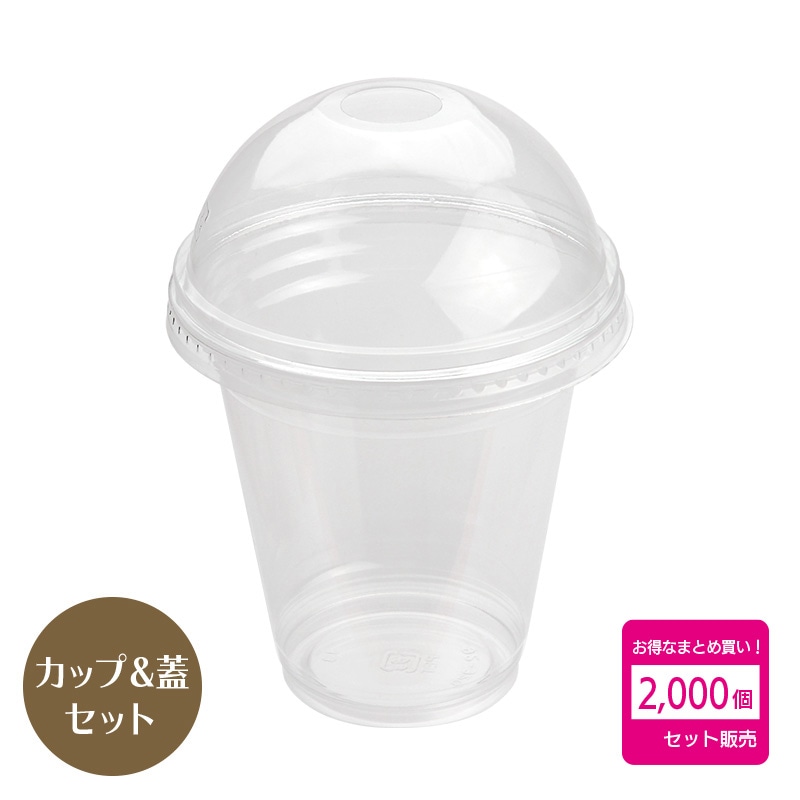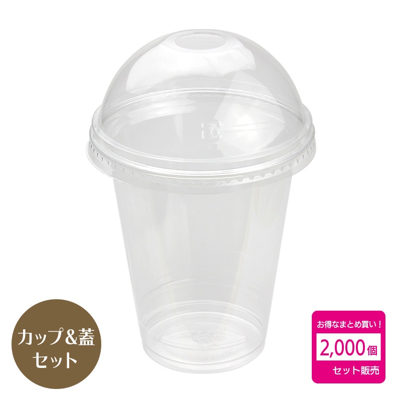 【納期3日~5日/代引不可】クリアカップ蓋付 12オンス プラスチックカップ 92-370L ドームリッド(穴有) 2,000個セット
