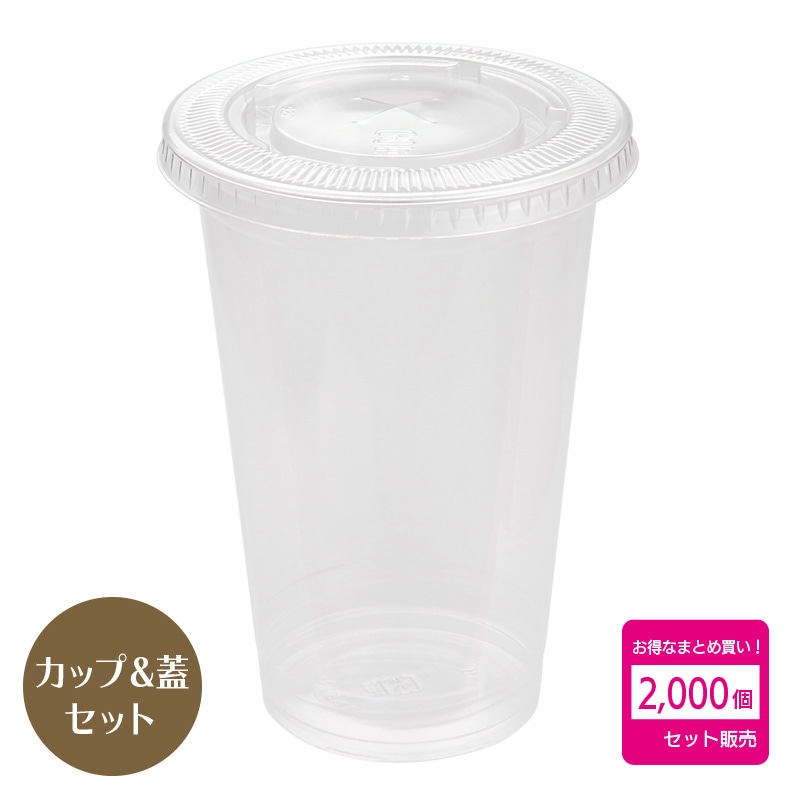 クリアカップ蓋付 17オンス プラスチックカップ 92-510L ストローレスリッド 2,000個セット