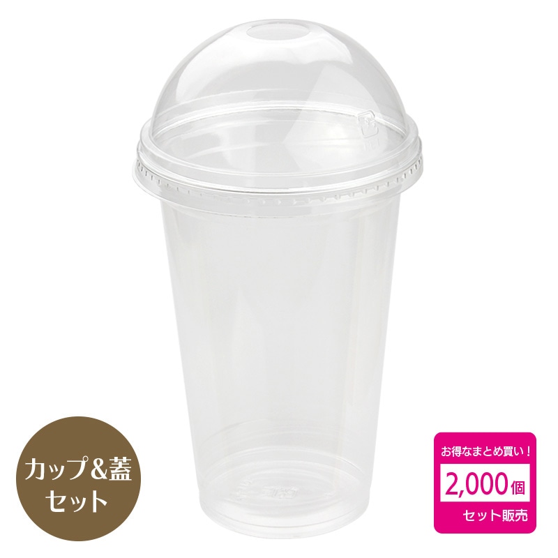 【納期3日~5日/代引不可】クリアカップ蓋付 14オンス プラスチックカップ 92-420L ドームリッド(穴有) 2,000個セット