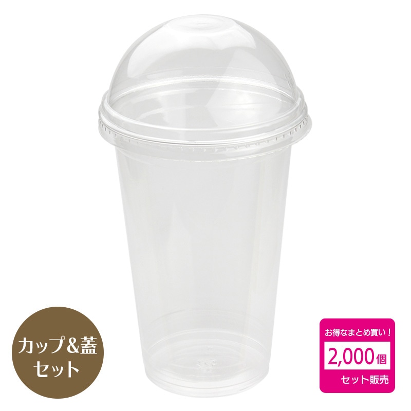 【納期3日~5日/代引不可】クリアカップ蓋付 14オンス プラスチックカップ 92-420L ドームリッド(穴無) 2,000個セット